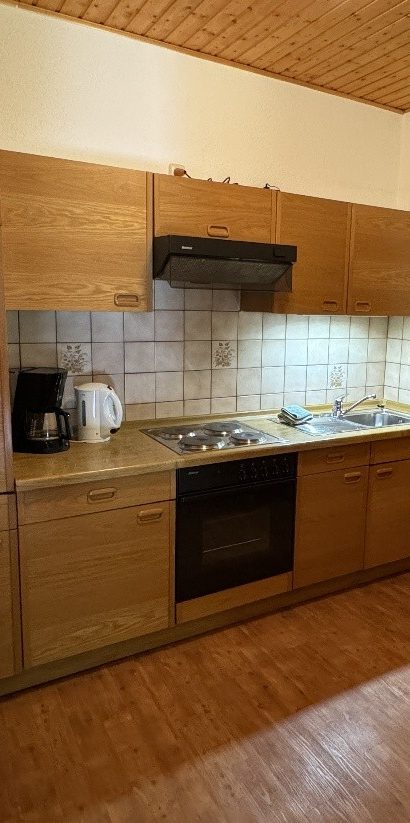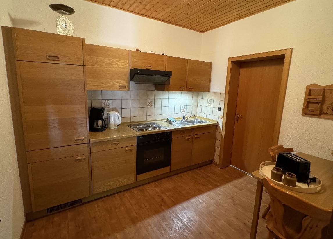 Die Küche ist komplett ausgestattet mit Elektroherd, Backofen, Dunstabzug, Kühlschrank, Kaffeemaschine, Toaster, Ess- und Kochgeschirr, sowie Küchenhandtüchern.